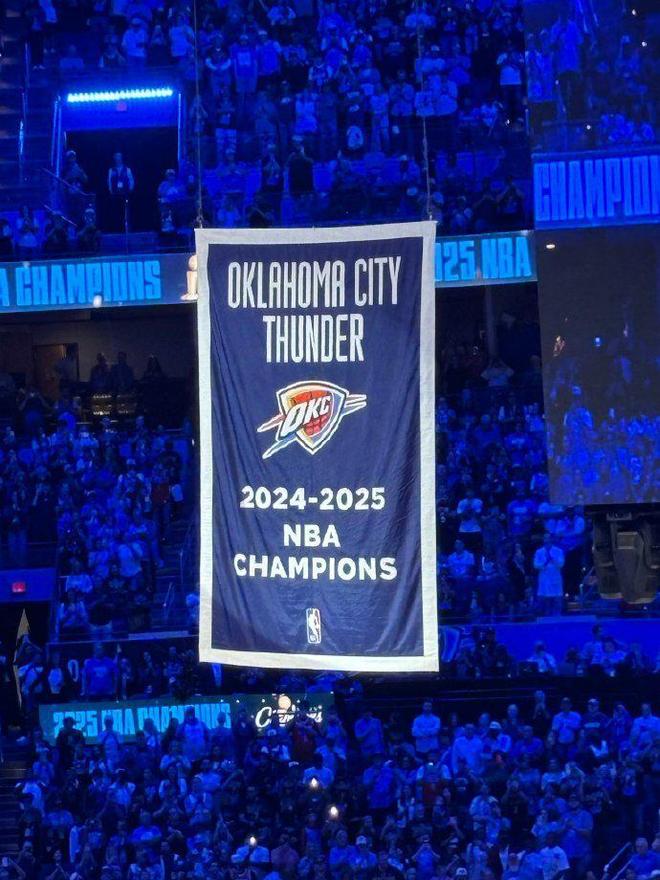 雷霆颁奖仪式:亚历山大领衔获冠戒升总冠军旗帜 火箭集体缺席