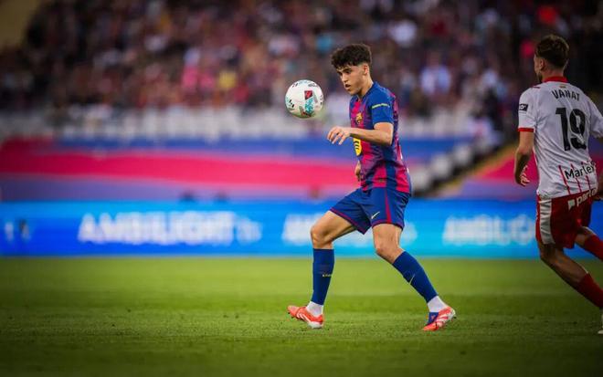巴萨开场后并未受到太大挑战,吉罗纳退守禁区,巴萨三中场可以在中前场从容连续传递组织进攻,不到10分钟,巴萨已经压到吉罗纳禁区前进行强攻,亚马尔也在右路做出了突破亚历克斯·莫雷诺的人球分过,比赛的进程似乎只等巴萨进球,进球也顺利出现,第13分钟,亚马尔右路传中,佩德里禁区内带球横向拉扯打反角先拔头筹,1比0。