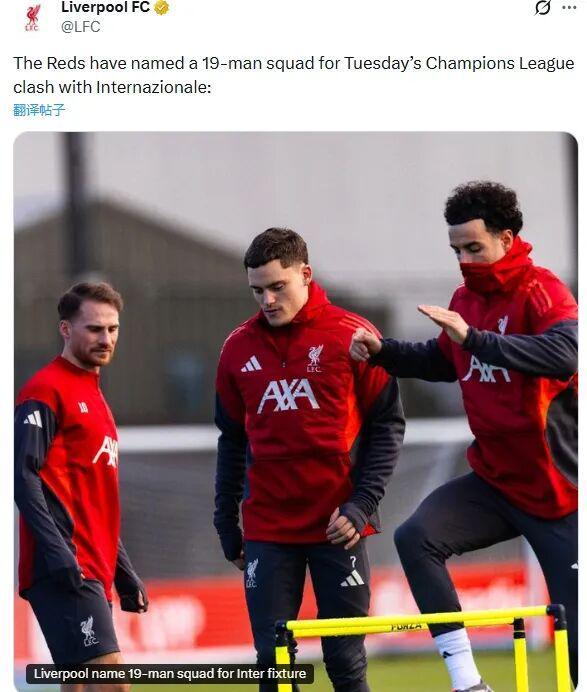 利物浦欧冠19人出征名单: